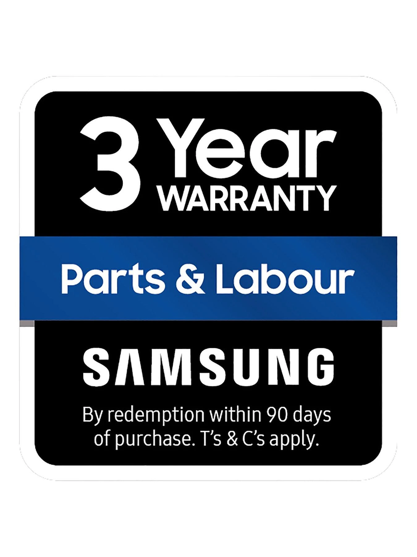 - 3 year Samsung parts and labour warranty