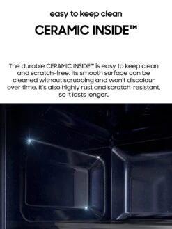 The durable CERAMIC INSIDE™ is easy to keep clean and scratch-free. Its smooth surface can be cleaned without scrubbing and won’t discolour over time. It’s also highly rust and scratch-resistant, so it lasts longer.