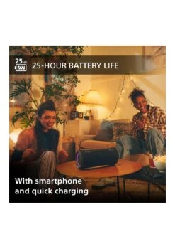 With 25 hours of battery life you get a full night and day on the go. What’s more, you need just 10 minutes of quick charging for an extra 70 minutes of battery life. The Sony XG300 can also be used for smartphone charging.