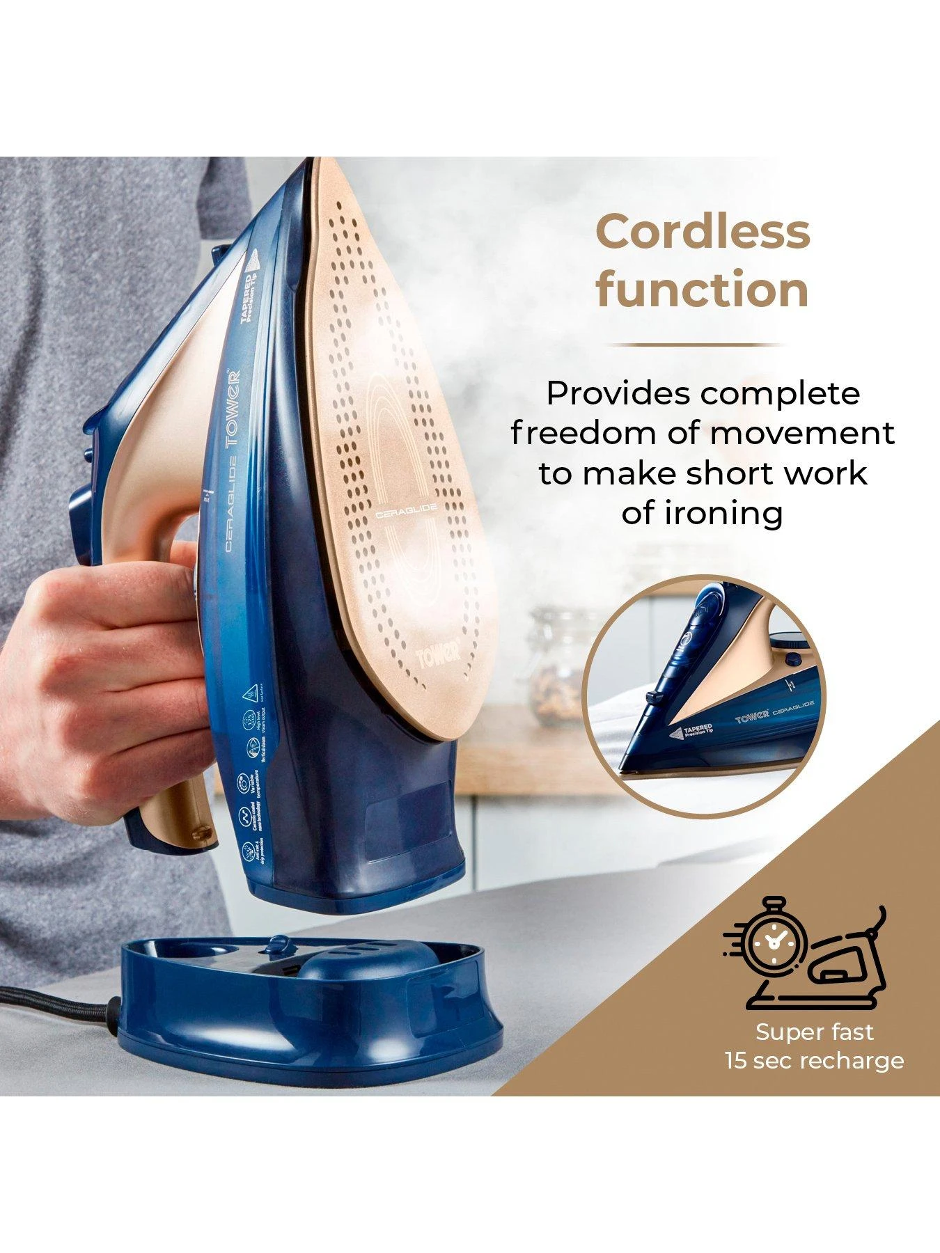 Tower 2400W Cord Cordless Steam Iron – Blue/Gold