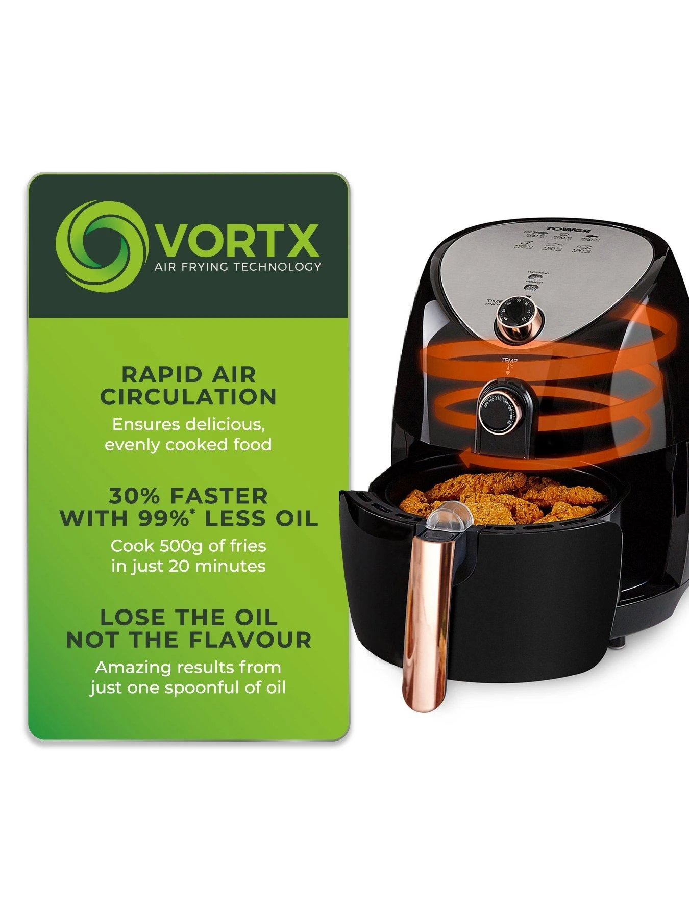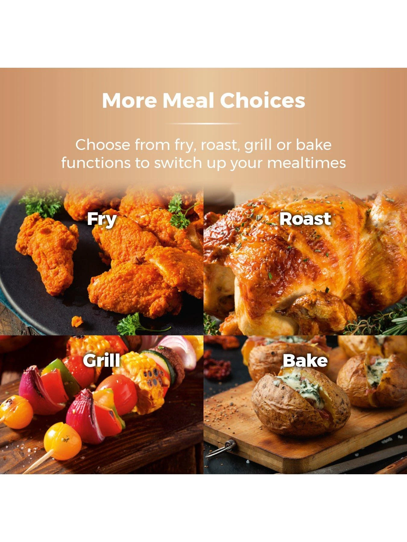 Styled in sleek black with sophisticated rose gold details, this Air Fryer will look contemporary on any kitchen counter. It’s also easy to clean, with a pull-out drawer that can be hand washed in seconds, while the removable basket is fully dishwasher-safe.