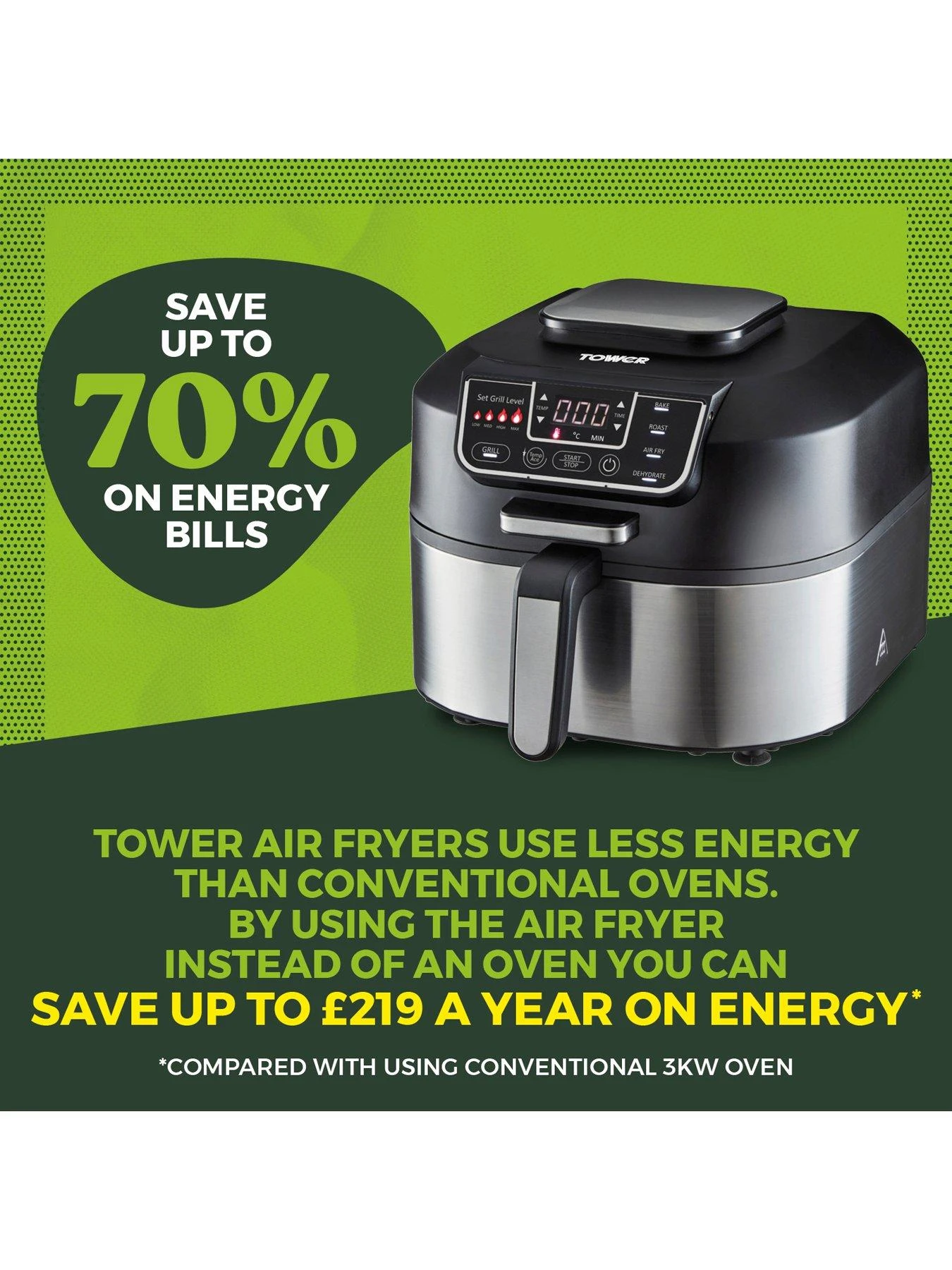 By switching to an air fryer, you can slash your energy use by 70% as it uses less power than a conventional oven. Packed with a powerful punch it cooks food 30% faster than a conventional oven, with 500g of fries ready to eat in under 20 minutes.
