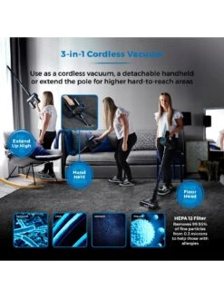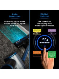 The VL100 Optimum Cordless 3-in-1 Pole Vacuum is a 29.6v DC motored vacuum cleaner boasting a powerful 11kpa suction power with a 1-litre dust tank. Converting into a handheld vacuum, it is perfect for staircases, cars and upholstery. We also love the touch-sensitive LED control panel with 4 power modes, which allows the suction power to be adjusted.