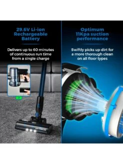 - Ultimate 11Kpa suction performance power with up to 60 minutes continuous vacuuming from a single charge.