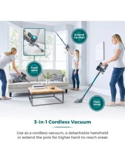 - Use as a cordless vacuum for carpets and hard floors, a detachable handheld for cars, stairs and upholstery