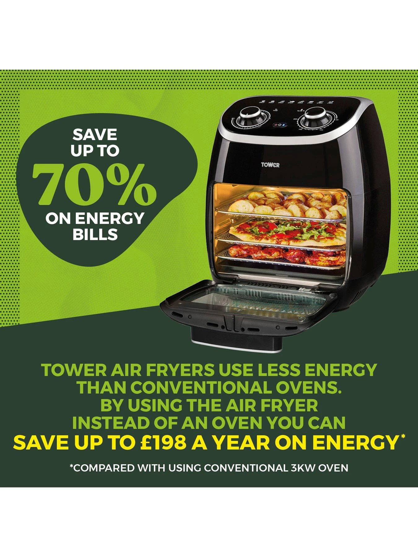 - SAVE UP TO 70% ON ENERGY: Slash the amount of electricity by up to 70% simply by using your Air Fryer Oven instead of your oven, with savings with savings of £198 per year