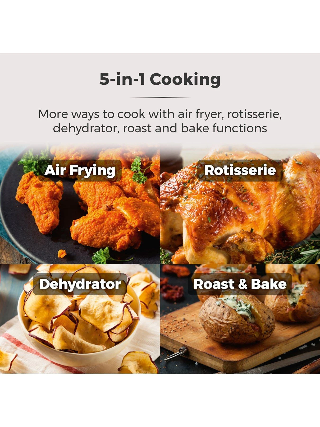 - ROTISSERIE FUNCTION: With spit and handle accessories to cook a whole chicken rotisserie style in under 1 hour