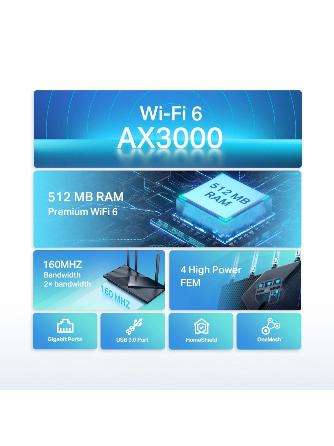TP Link Archer AX55 AX3000 Wi-Fi Dual Band Gigabit Router (for cable)
