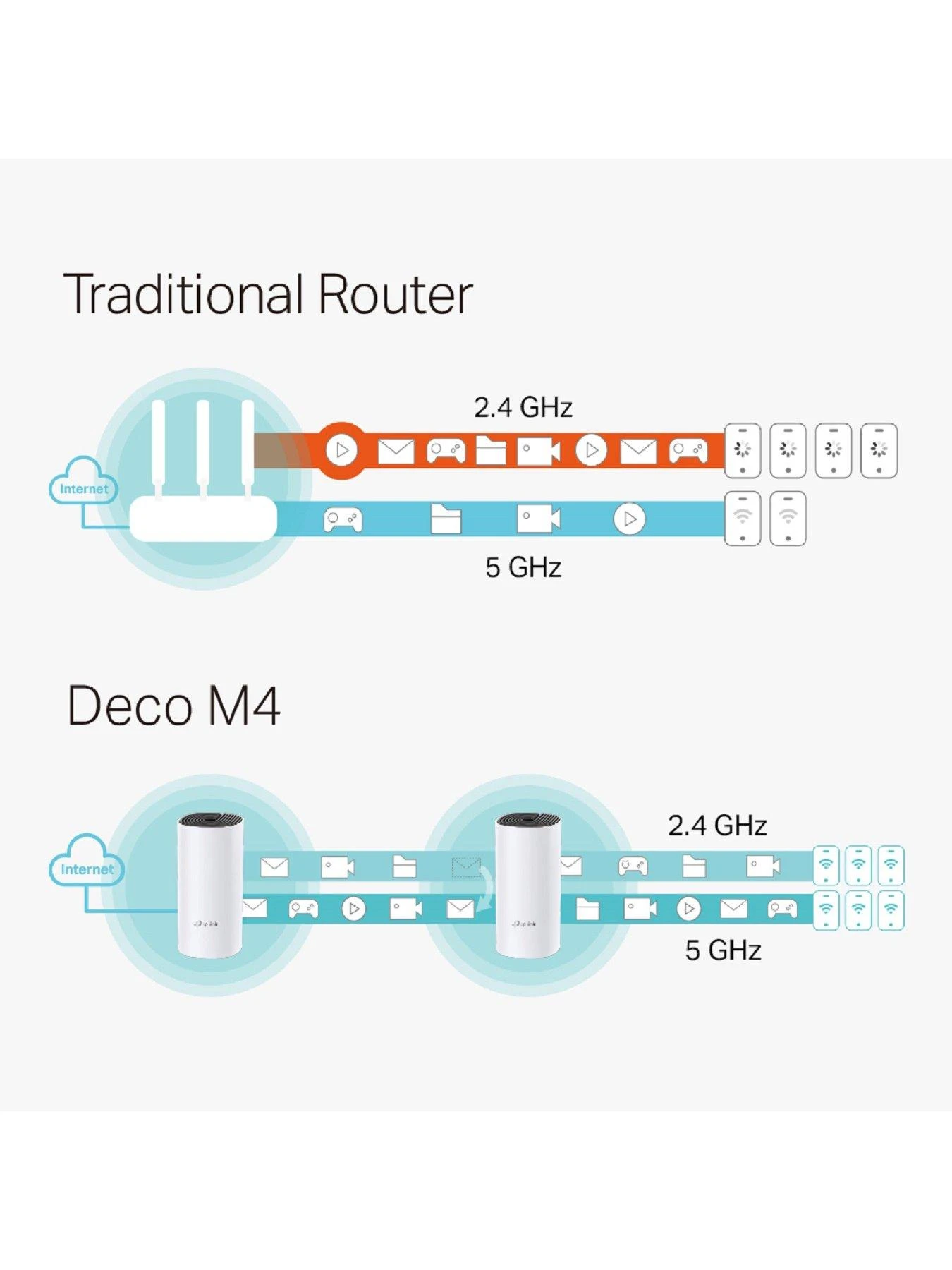 - Deco M4 provides fast and stable connections with speeds of up to 1167 Mbps and works with major internet service provider (ISP) and modem.