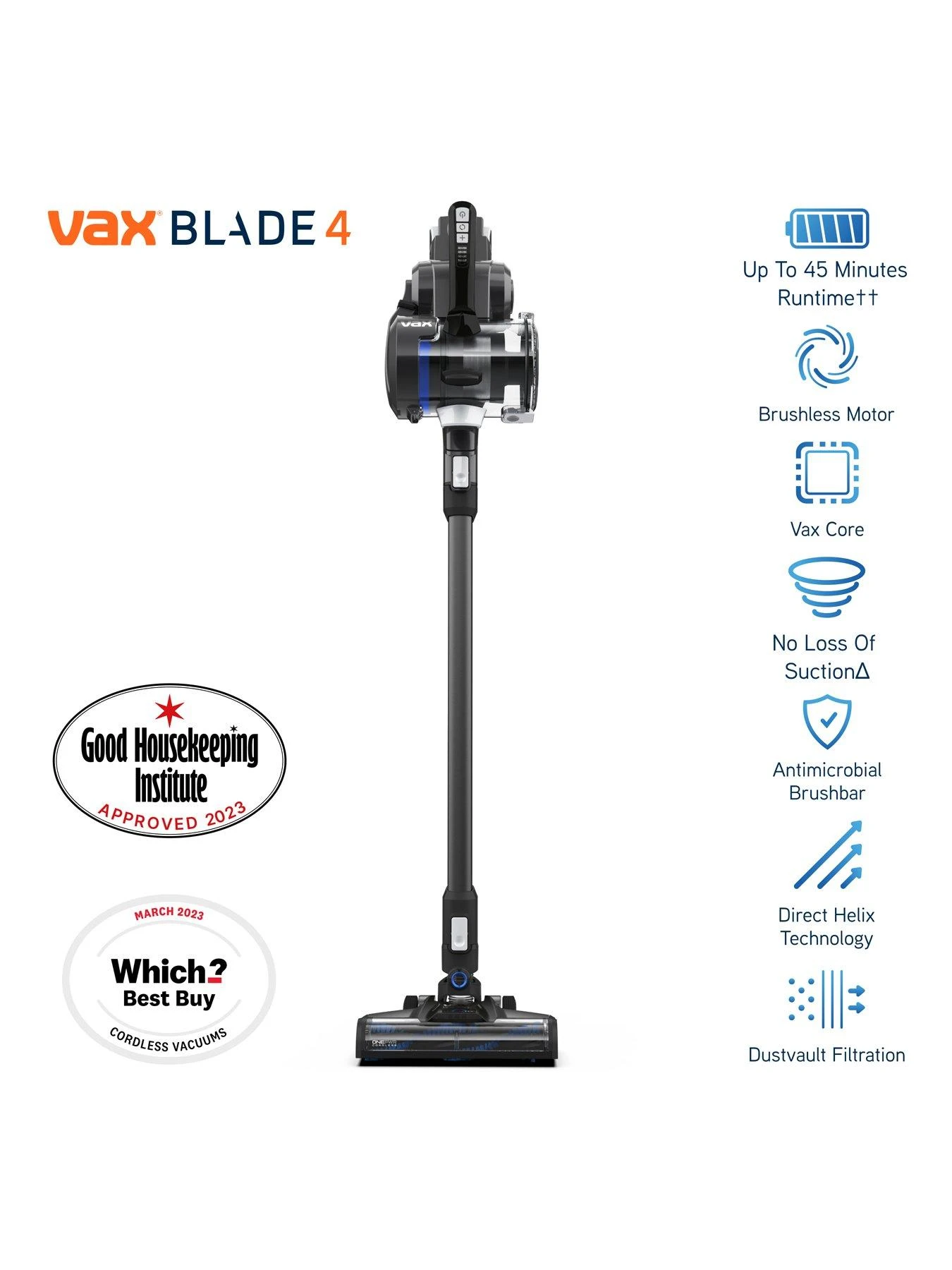 VAX Blade 4 ’s new brushless motor is the perfect balance of performance and intelligence. Controlled by VAX Core Technology, the 32 bit micro-processor continually monitors power to maximise cleaning efficiency & performance.