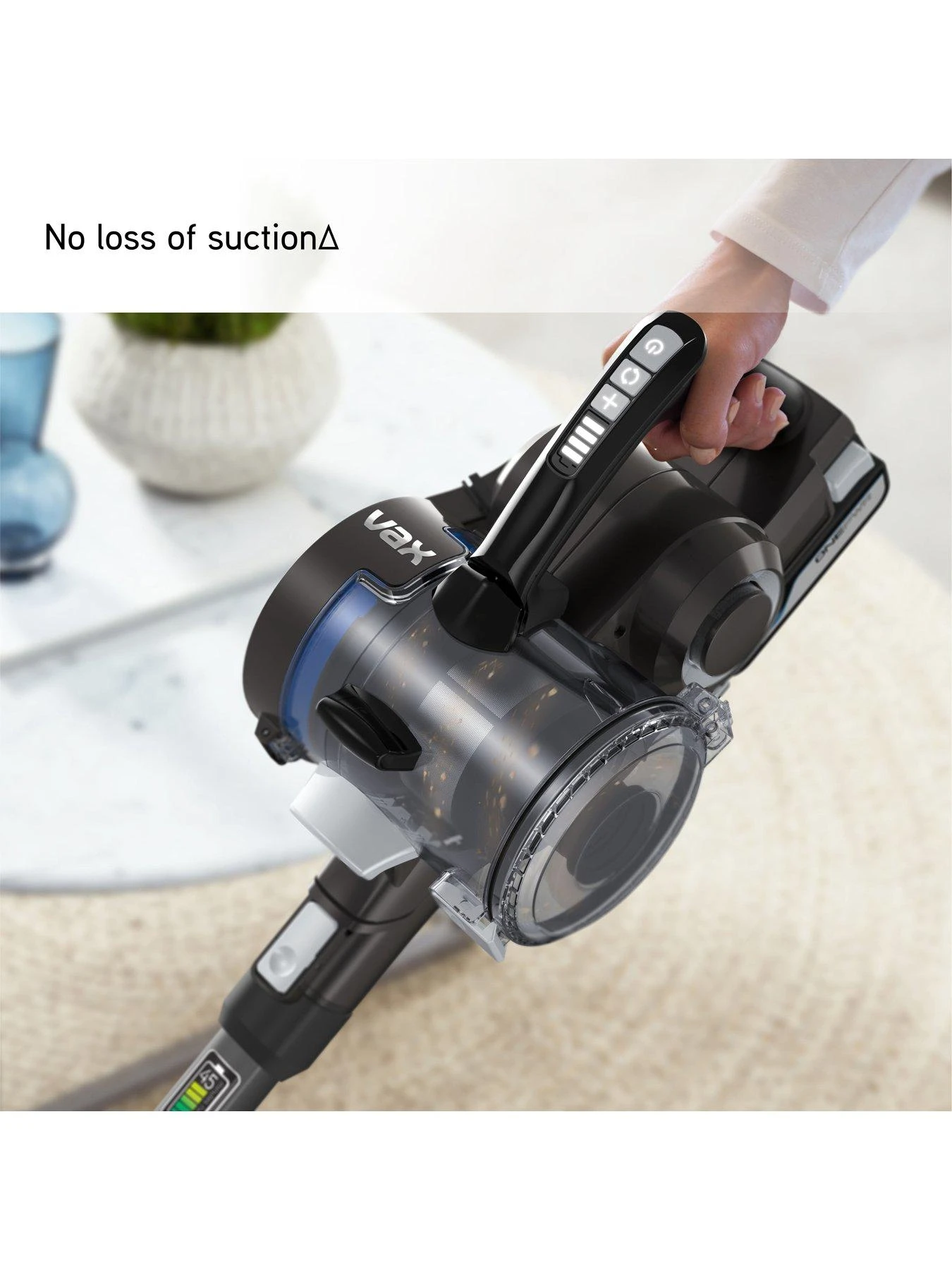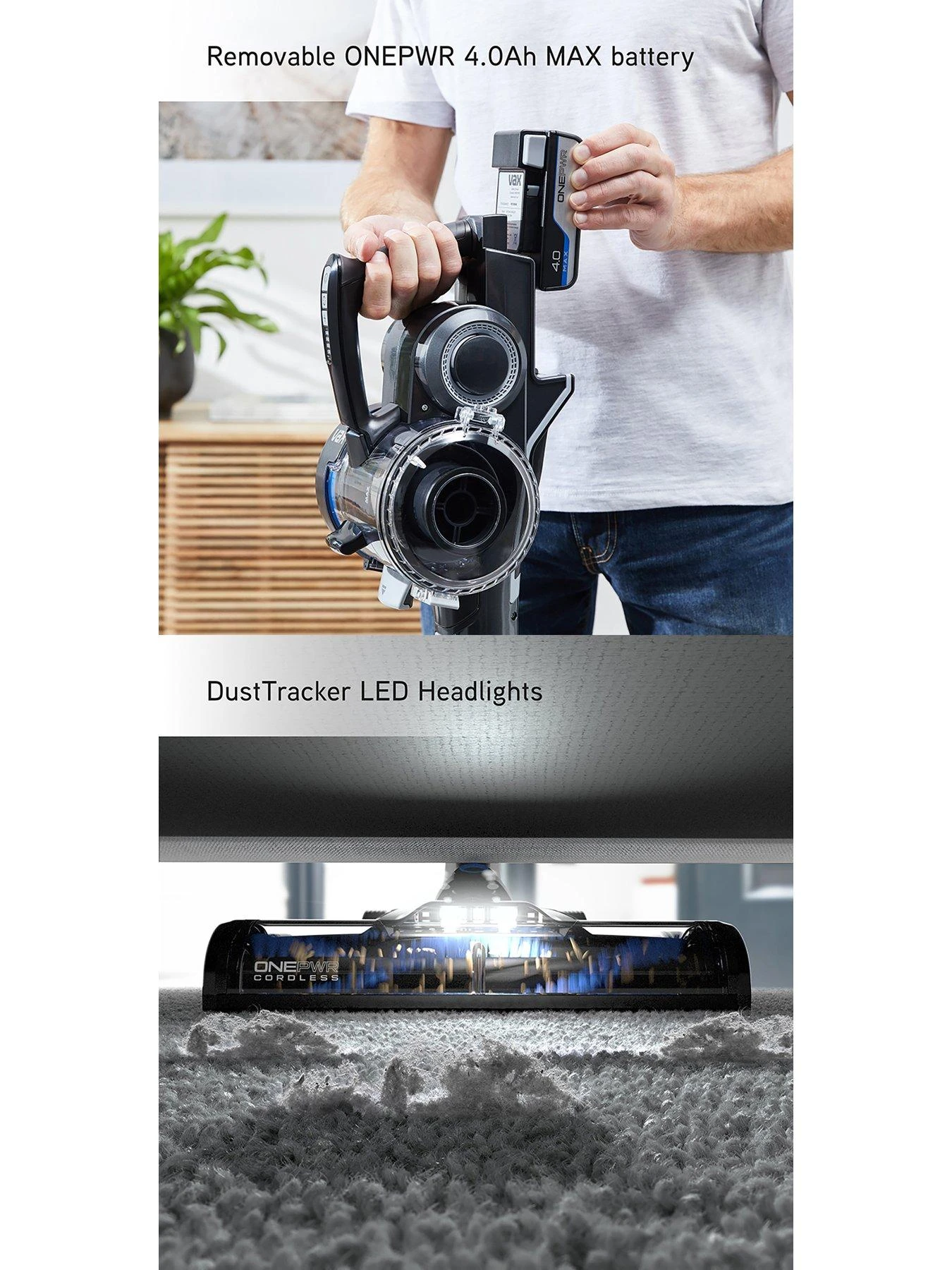 ONEPWR 4.0 Max batteries up to 45 mins runtime per battery††, there is plenty of time to clean without recharging. VAX Blade 4 provides continuous cleaning performance and you can simply switch out for another ONEPWR battery.
