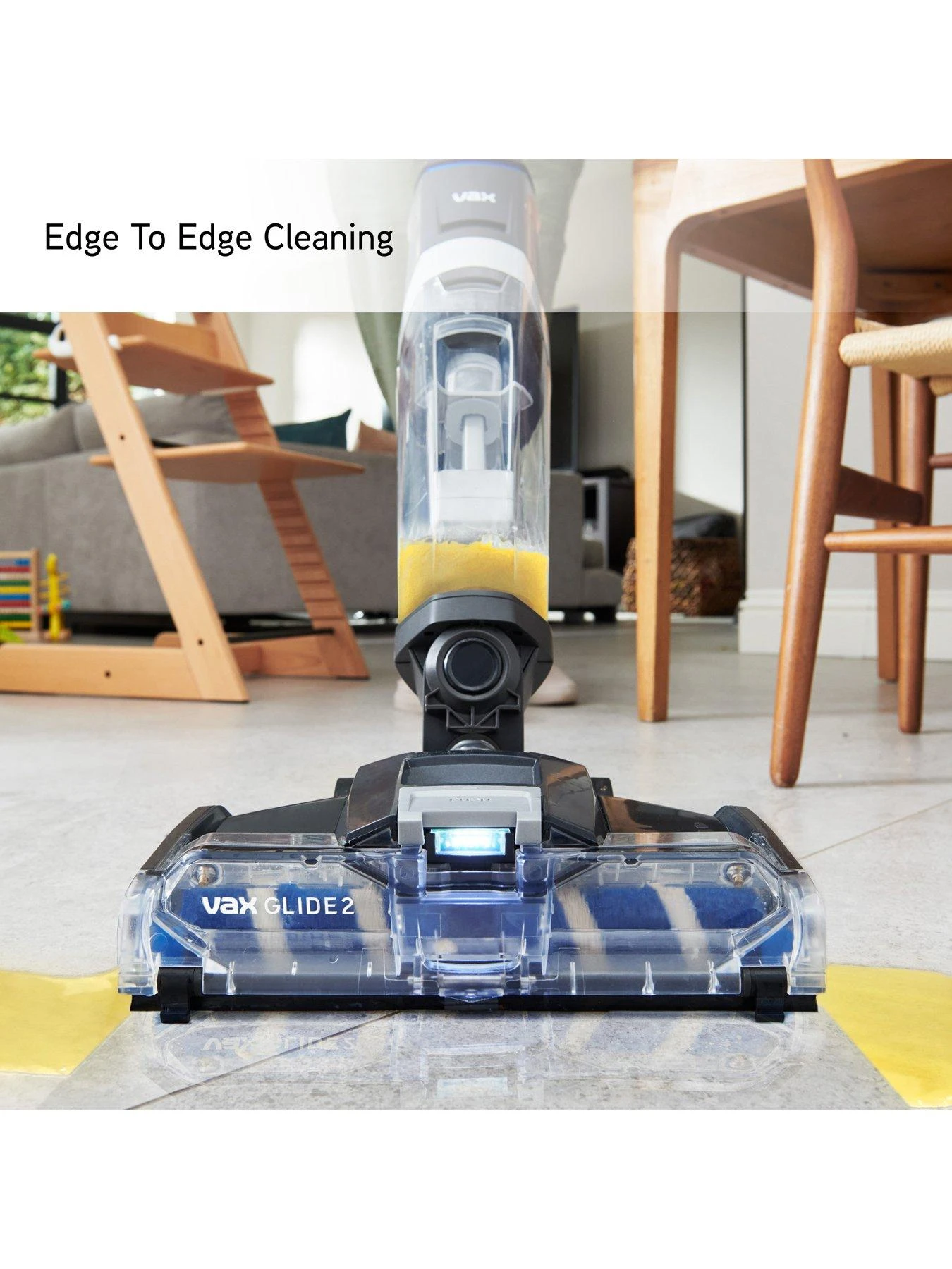 Make quick work of tough stains, whether they are new spills or dried on dirt. VAX Glide 2 has dual edge brush rolls that allow you to clean to the full width of the floorhead. Designed to be gentle on surfaces while providing optimum cleaning results.